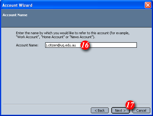 | 16)Netscape/Mozilla will automatically enter your email address as the account name. It is recommended that you leave this 'as is'. |