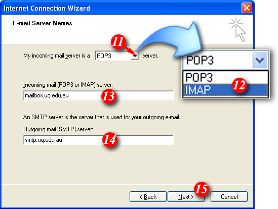 | 16)By default Outlook 2000 will enter part of your email address as the username. Delete this information and enter your 'email address' (for example: me@mydomain.com). | |||||